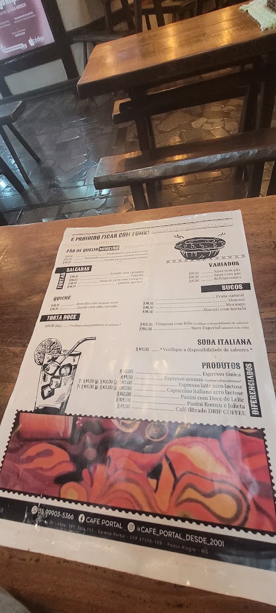 Café Portal offers a delightful array of fresh, flavorful dishes that cater to both savory and sweet cravings. Their menu is perfect for anyone looking for a cozy spot to enjoy a leisurely meal or coffee break. The Quiche de Brócolis Com Tomate Seco stands out as a savory option, offering a perfectly balanced blend of broccoli and sun-dried tomatoes. For those seeking a traditional Brazilian touch, the Pão de Queijo E Café Expresso Muito Bom delivers the classic Brazilian cheese bread paired with an exceptional espresso, a combination that’s hard to beat. Another satisfying choice is the Pão de Queijo E Mocacchino, which marries the familiar comfort of pão de queijo with the rich flavor of mocaccino. For coffee enthusiasts, Café Portal delivers with an Um Capuccino Excepcional, a cup that promises both boldness and smoothness in every sip. With a focus on quality and flavor, Café Portal’s menu is a perfect reflection of the comforting yet sophisticated tastes of Brazilian café culture.